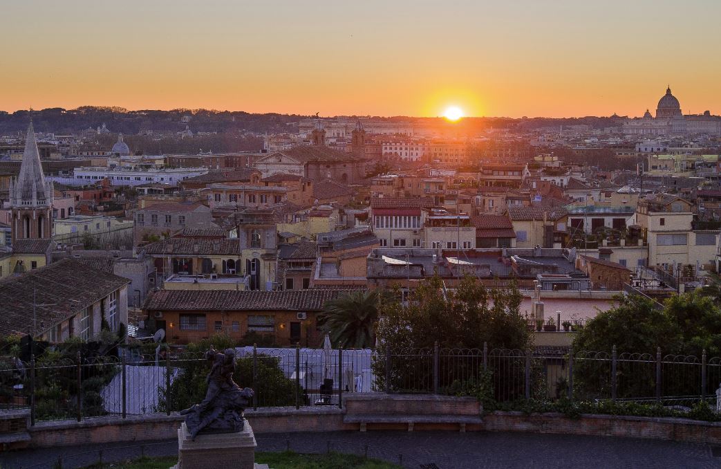 Терраса на холме Пинчо — интересное место в Риме вечером и особенно на закате. Это популярная видовая площадка, которая находится в парке Вилла Боргезе. С террасы Пинчо открывается панорама на Народную площадь и окрестности.